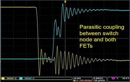 图9. 能够查看实际波形,使得诊断和解决开关节点之间的寄生耦合等问题成为可能。