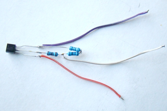 这是我的TMP35传感器十分频网络。我没有200?电阻,所以我串联了两个100?