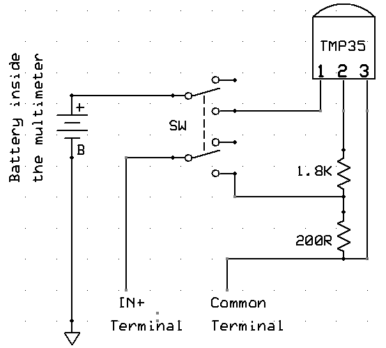 数字数字 万用表是一种非常有用的仪器,将多个测量功能组合在一起。典型的万用表具有可变量程欧姆表,电压表和电流表的功能。其中一些还包括测试二极管和晶体管的功能。在本文中,我将讨论将温度计功能添加到常规数字万用表中的技术。该技术非常简单,它使用一个温度传感器以及两个电阻和一个DPDT滑动开关。