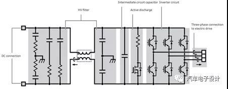 从原理图里面,在滤波设计,被动放电电阻方面还有差异,E-tron 只有一个主动放电的回路,Taycan 还加入了一个被动放电。从放大电流的角度,Taycan 可以做一个并联的考虑。