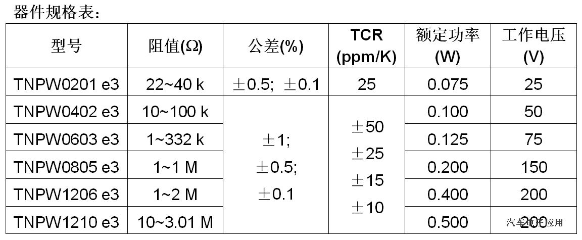 0201外形尺寸TNPW e3系列电阻器现可提供样品并已实现量产,一般供货周期为12周。