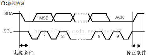 在一个字节传输的8个时钟后的第9个时钟期间,接收器必须回送一个应答位(ACK)给发送器。参考下图。