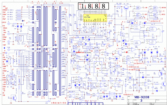 数字万用表DT9208电路,希望对您工作学习有所帮助,其电路图具体如下: