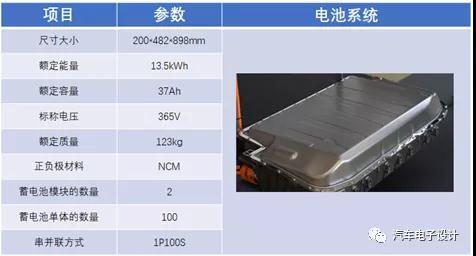 这款电池系统是用在 E300el(213)插电式混合动力汽车上的,安装在电池的后备箱里。电池系统的尺寸大小为 200 * 482 *898mm,电池的能量为 13.5kwh,额定容量 37Ah,标称电压 365V,质量 123kg,对应的系统能量密度为 109.7Wh/kg。