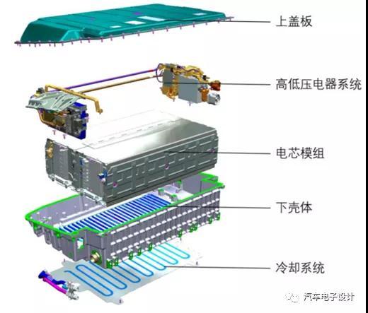 如下图所示,这个系统主要包括几个部分,上盖板、高低压电气系统、双模组系统、下壳体和在外部的冷却系统。