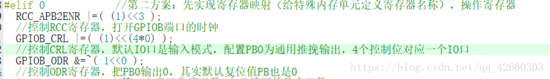 第一步:通过时钟控制寄存器rcc打开相应gpio口的时钟如下例中的PB0。