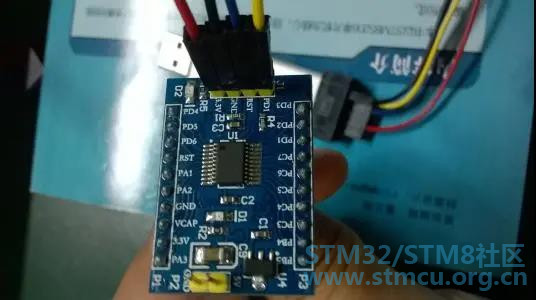 硬件环境采用STM8SF103,电压为3.3V。电路需要注意的是STM8SF103这系列的IO作为输入口时只能是上拉输入和悬浮输入,虽然是弱上拉,在VCC为3.3V电压时,仍然能够被拉升至3.0V左右。