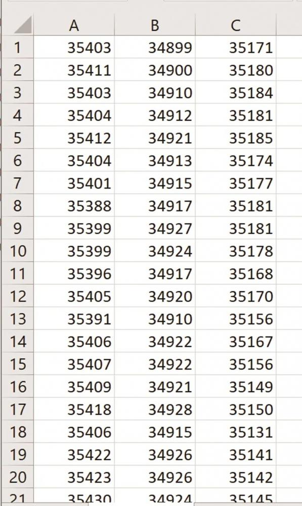 总共应该有三个文本文件,其中包含状态监控系统中 X、Y 和 Z 轴的振动数据。