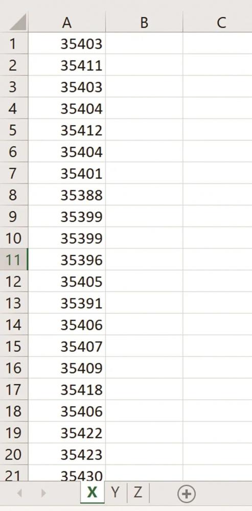 首先,将图 2 中的数据列分成 Excel 文件中的三个工作表,命名为 X、Y 和 Z,如图 4 所示。