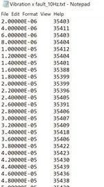 图 10. 包含时间和振动数据的文本文件。