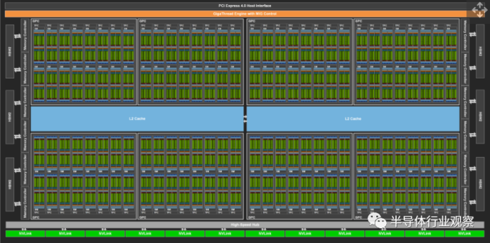 Ampere GA100使Nvidia以前的GPU相形见绌,其晶体管的数量是GV100的2.5倍。