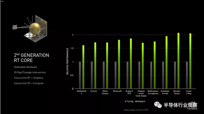 Ampere架构标志着NVIDIA的重要转折点。这是该公司的首款7纳米GPU,或用于消费类零件的8纳米GPU。无论以何种方式,制程减小都能使其在比以前更小的面积内封装更多的晶体管。它也是第二代消费者光线追踪和第三代深度学习硬件。较雄昂的制程为Nvidia极大程度上改进以前的RTX 20系列硬件和技术创造了条件。