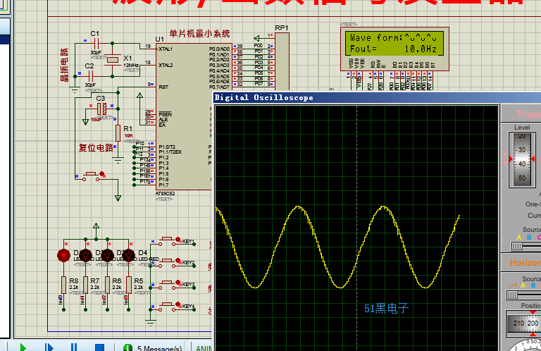 2.LCD1602液晶显示波形种类和频率值(10-100HZ)。