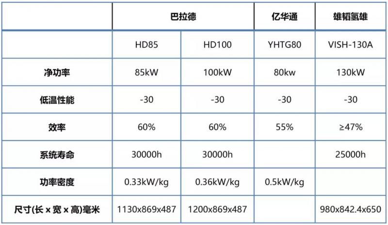 国内外主要燃料电池发动机系统供应商技术对比