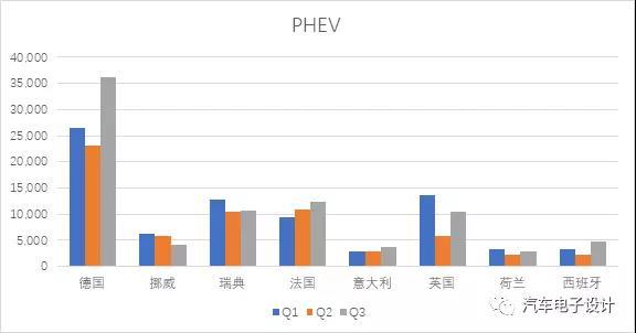 图 4 2020 年欧洲主要国家按季度分的 PHEV 的情况