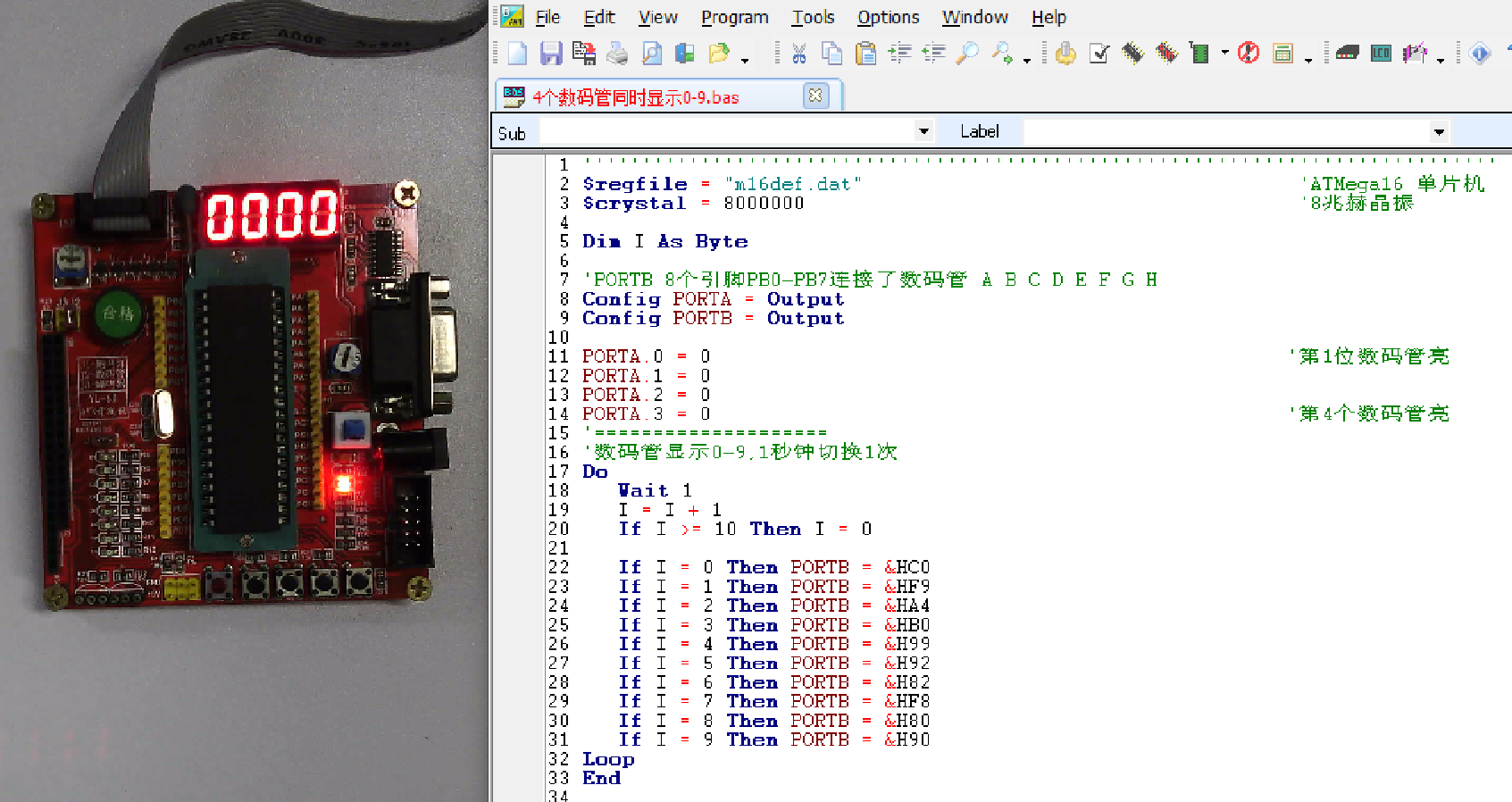 2020年09月07日 | BASCOM-AVR 4个数码管同时显示数字0-9