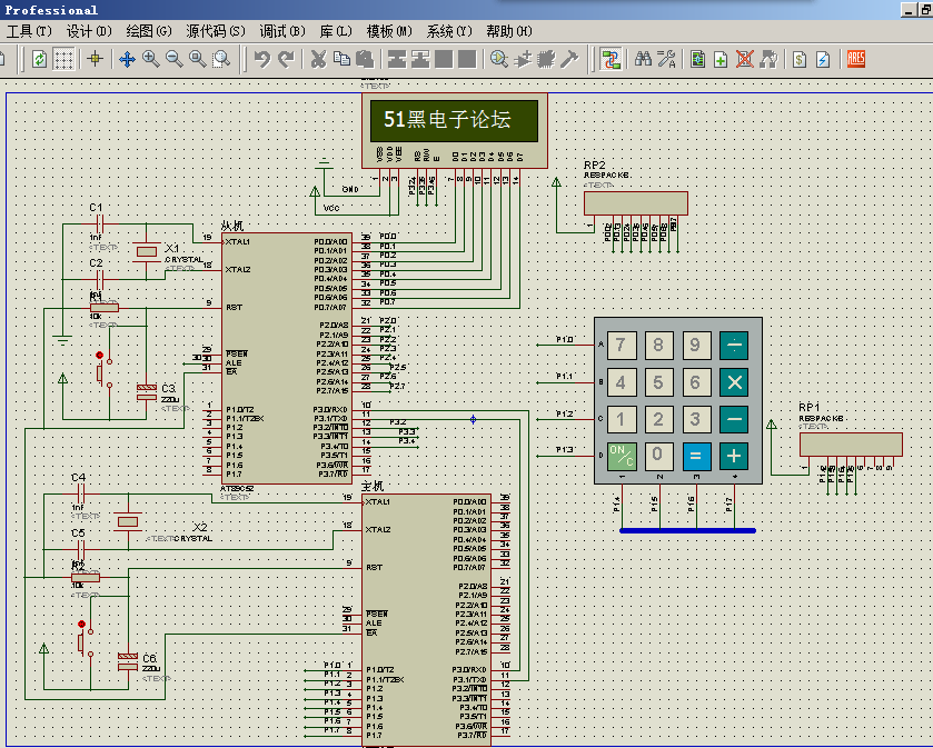#include unsigned char i=1; unsigned char ACK=1; void delay() //延时函数 { unsigned char i,j; for(i=255;i>0;i--) for(j=100;j>0;j--){} } unsigned char kbscan() //键盘扫描函数 { unsigned char sccode,recode; //定义行、列 P1=0xf0; //高四位作为输入先写1 if((P1&0xf0)!=0xf0) //判断是否按键按下 { delay(); //延时消抖 if((P1&0xf0)!=0xf0) //再次判断判断有没有按键按下 { sccode=0xfe; while((sccode&0x10)!=0) { P1=sccode; if((P1&0xf0)!=0xf0) //判断当前行是否有按键按下 { recode=P1&0xf0; //保留高四位输入值 sccode=sccode&0x0f; //保留第低四位的值 return(recode+sccode); } else sccode=(sccode<<1)|0x01; } } } return 0; } send()interrupt 4 //串行口通信中断 { if(TI==1&&ACK==1) { TI=0; if(i==0||i==0x22||i==0x44||i==0x66||i==0x88||i==0xaa||i==0xcc||i==0xdd||i==0xee) //有按键按下,需要修改波特率 { ACK=0; SBUF=i; //发送数据 } else if(i==11) //循环发送,发了十一个字符后重新发 { i=1; SBUF=1; } else { i++; SBUF=i; //发送数据 } } else if(RI==1) //接收回应的信号 { RI=0; ACK=SBUF; //接收回应信号 修改初值 触发串口通信中断 TI=1; TH1=TL1=i; i=1; } } void main() { TMOD=0x20; TH1=0x00;TL1=0x00; //置初值 TR1=1;EA=1;ES=1; //使T1开始工作;开总中断、串行中断 SCON=0x50; //使T1工作在工作方式1 SBUF=i; while(1) { while(kbscan()) { switch(kbscan()) //不同的按键对应不同的波特率 { case 0xeb:i=0x00;break; case 0xdb:i=0x22;break; case 0xbb:i=0x44;break; case 0xed:i=0x66;break; case 0xdd:i=0x88;break; case 0xbd:i=0xaa;break; case 0xee:i=0xcc;break; case 0xde:i=0xdd;break; case 0xbe:i=0xee;break; } } } } 复制代码 丛机程序: #include #define LCD_DATA P0 sbit LCD_BUSY=LCD_DATA^7; sbit LCD_RW=P3^3; sbit LCD_RS=P3^2; sbit LCD_EN=P3^4; sbit P20=P2^0; sbit P21=P2^1; sbit P22=P2^2; sbit P23=P2^3; sbit P24=P2^4; sbit P25=P2^5; sbit P26=P2^6; sbit P27=P2^7; sbit P30=P3^0; sbit P31=P3^1; sbit P32=P3^2; sbit P33=P3^3; sbit P34=P3^4; sbit P35=P3^5; sbit P36=P3^6; sbit P37=P3^7; unsigned char i=0; void LCD_check_busy(void) //检测LCD状态 { while(1) { LCD_RS=0; LCD_RW=1; LCD_EN=0; LCD_DATA=0xff; LCD_EN=1; if(!LCD_BUSY)break; LCD_EN=0; } } void LCD_cls(void) //LCD清屏 { LCD_check_busy(); LCD_EN=0; LCD_RS=0; LCD_RW=0; LCD_DATA=0x01; LCD_EN=1; LCD_EN=0; } void LCD_write_instruction(unsigned char LCD_instruction)//写指令到LCD { LCD_check_busy(); LCD_EN=0; LCD_RS=0; LCD_RW=0; LCD_DATA=LCD_instruction; LCD_EN=1; LCD_EN=0; } void LCD_write_data(unsigned char LCD_data)//输出一个字节数据到LCD { LCD_check_busy(); LCD_EN=0; LCD_RS=1; LCD_RW=0; LCD_DATA=LCD_data; LCD_EN=1; LCD_EN=0; } void LCD_initial() { LCD_write_instruction(0x38); //两行显示 LCD_write_instruction(0x0C); //显示开 LCD_write_instruction(0x06); //光标加1 LCD_write_instruction(0x01); //清屏 } re() interrupt 4 //串行口通信中断 { if(RI==1) { RI=0; i=SBUF; // 接收数据 if(i==0||i==0x22||i==0x44||i==0x66||i==0x88||i==0xaa||i==0xcc||i==0xdd||i==0xee) { SBUF=1; //接收发过来 要修改的初值 } else //接收正常通信的数据 { LCD_write_instruction(0x80+i); LCD_write_data('0'+i); if(i==11)LCD_initial(); } } else if(TI==1) { TI=0; TH1=i;TL1=i; //发送确认信号后 修改初值 } } void main() { TMOD=0x20; TH1=0x00;TL1=0x00; //置初值 TR1=1;EA=1;ES=1; //使T1开始工作;开总中断、串行中断 SCON=0x50; //使T1工作在工作方式1