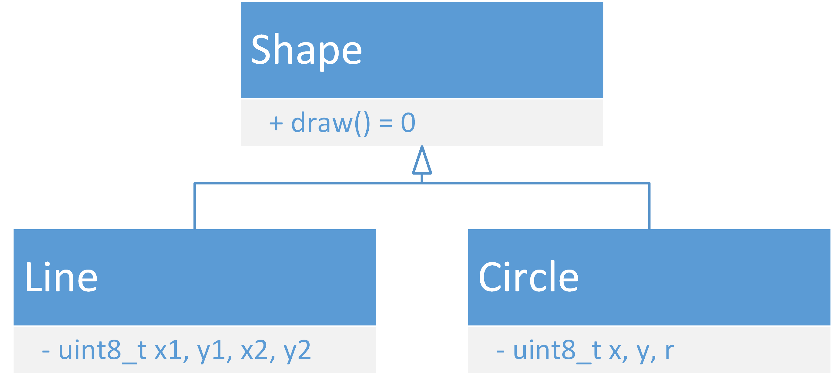 #include #define F_CPU 25000000 #include class Led { public: Led(uint8_t index) { mask = 1 << (4 + index); DDRC |= mask; } void on() { PORTC |= mask; } void off() { PORTC &= ~mask; } private: uint8_t mask; }; Led red(0), yellow(1), green(2), blue(3); int main() { while (1) { red.on(); blue.off(); _delay_ms(500); red.off(); blue.on(); _delay_ms(500); } } 在这个程序中,我定义了类Led,它有3个函数:构造函数Led(uint8_t),设置mask并在硬件上初始化LED;on和off,分别开和关LED。然后创建了4个全局变量,分别代表4个LED。最后在main中使用,red.on()使红灯亮,是不是很形象呢?除了形象,你也许还注意到,我没有显式调用含有DDRC的那个函数,实际上它在main之前创建全局变量的时候被调用,自动地初始化硬件。我打赌你之前一定忘记过初始化,而C++帮你解决了这个问题。对象的构造、复制、移动、销毁,以及内存分配,都可以交给C++的语法和标准库来处理。 上面这个程序实际上是基于对象范式的,它体现了抽象和封装。面向对象则更进一步,体现了继承和多态。继承是类与类之间的关系,如果类D继承自类B,那么D类型的对象就包含B类型对象所包含的一切内容,类B称为类D的基类,类D称为类B的派生类。多态是指相同的语句表现出不同的行为,换言之不同行为可以有统一的接口,可分为编译期多态和运行时多态。运行时多态体现为虚函数:基类定义虚函数,派生类们实现虚函数,通过基类调用时,实际属于不同派生类的对象表现出不同的行为。很难理解吧,我们通过实例来看: #include class Shape { public: virtual void draw() const = 0; }; class Line : public Shape { public: Line(uint8_t x1, uint8_t y1, uint8_t x2, uint8_t y2) : x1(x1), y1(y1), x2(x2), y2(y2) { } virtual void draw() const override { // Bresenham line... } private: uint8_t x1, y1, x2, y2; }; class Circle : public Shape { public: Circle(uint8_t x, uint8_t y, uint8_t r) : x(x), y(y), r(r) { } virtual void draw() const override { // Bresenham circle... } private: uint8_t x, y, r; }; int main(void) { Line line(0, 0, 127, 63); Circle circle(64, 32, 16); Shape* shapes[2]; shapes[0] = &line; shapes[1] = &circle; for (uint8_t i = 0; i != sizeof(shapes) / sizeof(*shapes); ++i) shapes[i]->draw(); while (1) ; } override是C++11引入的关键字,你需要在项目属性->Toolchain->AVR/GNU C++ Compiler->Miscellaneous->Other flags中写-std=c++11,以启用C++11标准。 这个程序涉及3个类: 基类Shape定义了虚函数draw,派生类Line和Circle提供了不同的实现。main创建了Line和Circle类各一个对象,把指针放到Shape*类型的数组shapes中,然后通过指针调用draw函数,结果是Line::draw和Circle::draw分别被调用一次。要注意,只有通过指针或引用调用虚函数才能多态。引用用类型后的&表示,功能与指针类似,但不用写取地址和解引用符号,形式上更加简洁一点。 正如你所见,面向对象范式可以帮助你构建起现实中的对象之间的关系。在大型程序中,类与类、对象与对象、类与对象之间有复杂的联系,形成了各种设计模式。 C++和C一样可以自定义数据结构,但是不像C一样用宏来定义ADT,也不用void*来抹去类型,而是引入了模板,可以把元素类型作为模板参数定义类和函数,一个模板类或模板函数可以实例化成很多个类或函数。比如我们在UART一讲中写过的队列,在C++中可以这么写: #include template class Queue { public: Queue() = default; Queue(const Queue&) = delete; Queue& operator=(const Queue&) = delete; Queue(Queue&&) = delete; Queue& operator=(Queue&&) = delete; void push(const T& element) { data[tail] = element; tail = increase(tail); } void pop() { head = increase(head); } bool empty() const { return head == tail; } bool full() const { return increase(tail) == head; } const T& peek() const { return data[head]; } private: T data[S]; size_t head = 0; size_t tail = 0; static size_t increase(size_t value) { if (++value == S) value = 0; return value; } }; 顺便把UART那些函数改写一下: #include #include #include #include #include #define F_CPU 25000000 #include class Uart { public: Uart() { UCSR0B = 0 << UDRIE0 // UDRE interrupt disabled | 1 << TXEN0; // TX only UCSR0C = 0b00 << UMSEL00 // asynchronous USART | 0b10 << UPM00 // even parity | 0 << USBS0 // 1 stop bit | 0b11 << UCSZ00; // 8-bit UBRR0L = 40; // 38400bps } void print(char c) { bool full = true; while (1) { ATOMIC_BLOCK(ATOMIC_FORCEON) { if (!queue.full()) full = false; } if (!full) break; // if full, wait until buffer is not full } ATOMIC_BLOCK(ATOMIC_FORCEON) { if (queue.empty()) UCSR0B |= 1 << UDRIE0; queue.push(c); } } void print(int i) { char str[10]; itoa(i, str, 10); print(str); } void print(const char* s) { for (; *s; ++s) print(*s); } void println() { print('n'); } template void println(const T& t) { print(t); println(); } void _interrupt() { UDR0 = queue.peek(); queue.pop(); if (queue.empty()) UCSR0B &= ~(1 << UDRIE0); } private: Queue } uart; ISR(USART0_UDRE_vect) { uart._interrupt(); } int main() { for (char c = ' '; c <= '~'; ++c) uart.print(c); uart.println(); for (int16_t i = 0; ; ++i) { uart.println(i); _delay_ms(500); } } 有什么好处呢?第一段代码把原来为char编写的64字节队列缓冲区改写成任意类型、任意长度的队列类模板Queue,以类型T与大小S为模板参数。Uart类中创建了Queue 第二段代码是把C代码转换成了基于对象风格的C++代码,这个刚刚介绍过了,亮点在于函数print和println。print这一个函数名字对应参数为char、int和const char*的三个版本,这三个函数是重载函数。如果你给print函数传一个参数,编译器会帮你匹配到最合适的一个重载。在没有模板的情况下,你可以把重载看作是一个人性化的功能,毕竟你是知道实际上哪个函数会被调用的,如果