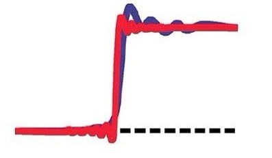 在图4中,蓝色轨迹是通过示波器上不理想的垂直放大器系统的未校正波形。红色曲线显示了DSP形状校正以及增强的带宽和改善的上升时间。