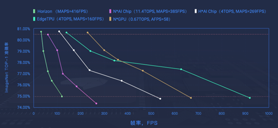上图为MAPS评估方式下主流芯片测试结果,右一折线为地平线旭日3测试结果