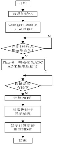 其软件部分的的设计由ADC0832采样子程序、中断子程序、LCD初始化子程序、PID控制子程序、PID参数按键修改子程序。ADC0832采集温度信号,信号经A/D转换后送至单片机STC89C52进行PID处理,用户可以根据自身条件对PID参数进行调整,之后LCD显示器显示温度值和PID处理值,从而控制电阻炉温度。