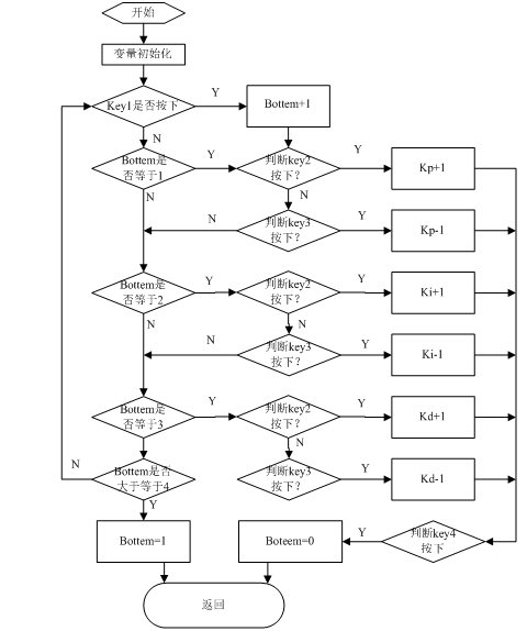 为了能够满足用户的需要,电阻炉温度控制器能偶调整不同的PID参数,以便控制温度。其PID参数修改子程序流程图如图4.5所示:
