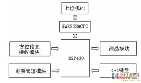 本文主要研究的是基于MSP430 单片机的空间定向测试仪,该仪器的工作原理是将方位信息接收器接收到的数据传输给MSP430 单片机的可读存储器中,然后在经过输出端显示到液晶屏上。在这一过程中,我们需要设计一个硬件接口电路,连接信息接收器和液晶显示器,而MSP430 单片机的读写控制则需要通过语言编程来完成。