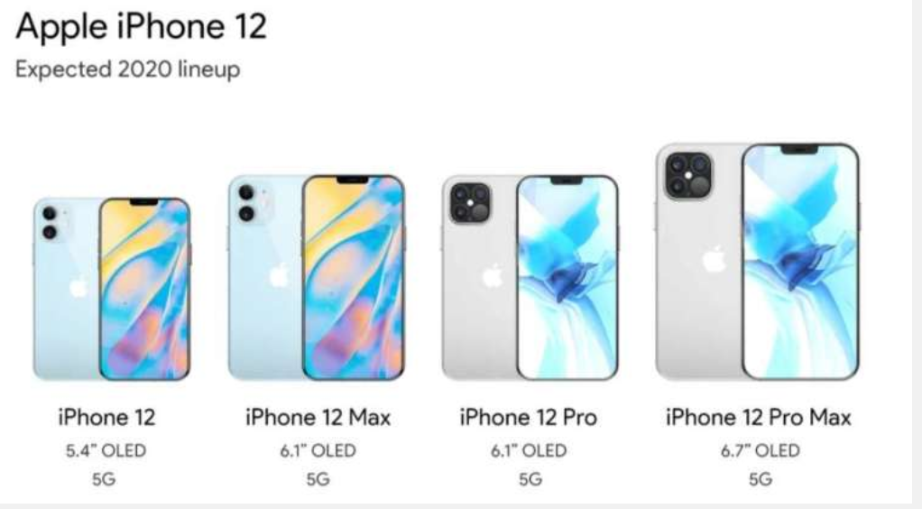 其中包括 5.4 吋 iPhone 12、6.1 吋 iPhone 12 Max 和 iPhone 12 Pro,以及 6.7 吋 iPhone 12 Pro Max。