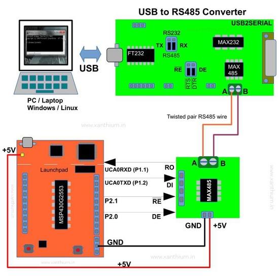 完成RS485与微控制器的连接之后(MSP430 Launchpad ),这是将嵌入式系统部件(MSP430 + MAX485)与PC连接的时间。
