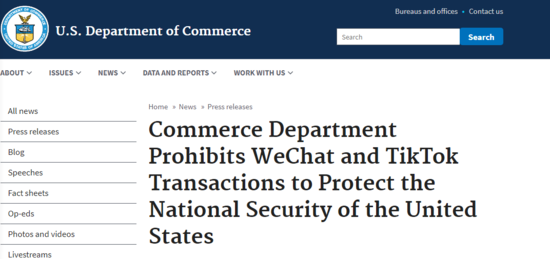 2020年09月20日 | 美国商务部将禁止美国区域应用商店分发TikTok与微信应用