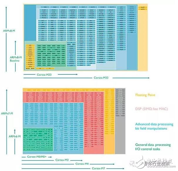图1 各款Cortex-M处理器支援的指令集
