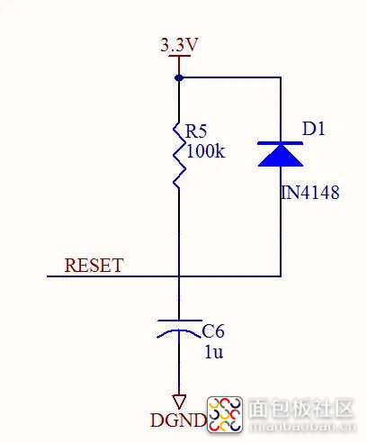 我们一般使用单片机的时候,硬件电路中的复位电路设计如下图所示。此复位电路是针对低电平有效复位而言的,其中二极管是起着在断电的情况下能够很快的将电容 两端的电压释放掉,为下次上电复位做准备。