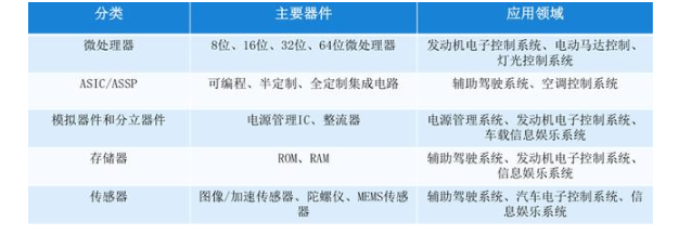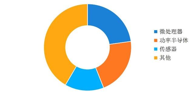 微处理器、功率半导体和传感器是市场汽车半导体应用的主体。