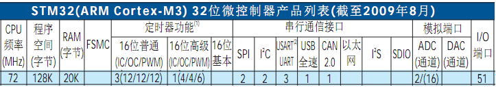 从《STM8S和STM32选型手册》中,可以得到如上图的STM32F103RB的一些硬件参数。