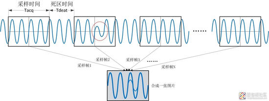 有的人可能会觉得好奇,示波器的屏幕刷新一般只有几十赫兹,每秒只能刷新几十张图片,这么多波形屏幕可以显示的过来吗?事实上,示波器里面还有波形合成器,如下图所示,波形合成器会将多帧波形合成一张图片,屏幕每秒虽然只刷新了几十张图片,但是每张图片里包含成千上万帧波形,所以波形刷新率再高屏幕都是可以显示的过来。