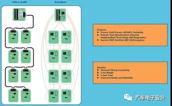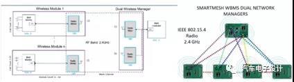 1)不管是和集中式的 iX3、还是和 MEB 的半分布式的相比,整个模组上去基本看不到线,基本形成了全覆盖。 2)两个模组的上盖采用一体化的设计,从上面来看,整包几乎看不到任何线束和高压铜排,特别是中间连接处,对比来看就是真正达到我们想要的,装上去模组固定拧下螺丝就可以了,这里通用没有展示模组之间的处理过程,按照这个设计,可能直接上快插就可以,反正整体模组都是有遮盖的。 图 1 集中式电池管理系统 iX3 和无线电池管理系统下的布线设计对比 图 2 半分布实 MEB PK 无线管理系统的布线设计对比 3)无线 BMS 的最大的好处,还是每个电池模块之间不再有传输的通信线了,可以这样理解配置了专门的管理系统以后,单个模组都能拿出来直接做全生命周期管理都可以获得监控和管理 如果在芯片架构上,能够做一些信息存储,也就是可以把电池管理系统的使用情况往回达到模块里面,那样等于电池模块里面就有一个电池记录器,一方面可以把温度、电压往外发,一方面记录每次使用的时间和信息情况,每个模组都可以拆开来单独使用,不考虑重新配置电池管理,换言之这种方式能更好的支持车电分离。电池不适合车用,直接读取和配置即可,通过无线收发器就可以。 在通用宣布以前,ADI 就一家开始宣传自己的方案是在之前这套东西,当然由于没有车企官宣背书,而且目前分布式、半分布式、集中式大家都在用,无线电池管理是分布式演变的一个变种。 图 3 ADI 的全架构 这块其实不少企业都在尝试,最早和方武他们开发的是一个分支方向,而 ADI 是基于 IEEE 802.15.4 2.4GHz 的方案。根据我们之前的信息了解,这是基于 SmartMesh 嵌入式无线网路在工业物联网(IoT)应用中经过了现场验证,通过路径和频率分集来实现冗余。对于汽车的恶劣环境下的可靠性,从厂家来看似乎很好,较早之前在 BMW i3 车型中整合了 LTC6811 电池组监控器和 ADI SmartMesh 网路技术做了一些尝试。 图 4 ADI 的无线电池管理架构 小结:从 2 年前来看确实有点超前,但是从 2020 年来看,随着车电分离还有不同领域应用的灵活性来看,这种方案有 GM 带头,大家也要跟着看看吧,万一真大规模推广,带来的变化确实挺大的。