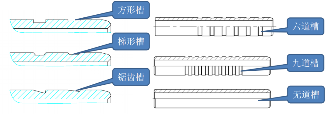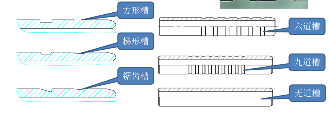⑥根据内层胶弹性、伸长率、撕裂强度等性能情况和铆爪形状,选择合适的开槽形状、数量、尺寸和 结构,理论上是越多越好。