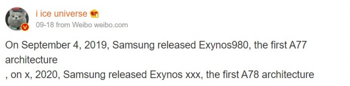 2020年09月23日 | 爆料者称未命名三星Exynos芯片组将采用Cortex-A78核心