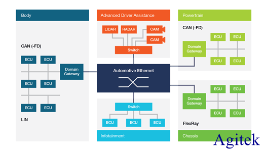 汽车以太网源于成熟的IT 技术并满足容量和集成度的需求。与非汽车以太网不同,汽车总线使用非屏蔽的单绞线以便减轻重量并降低成本。 它使用 PAM3 调制实现高数据速率和可靠性。