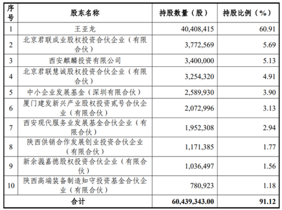 莱特光电的控股股东和实际控制人为王亚龙,直接持有公司60.91%股份,通过其控制的西安麒麟投资、共青城青荷和共青城麒麟间接控制公司7.09%股份,合计控制公司68.00%股份。
