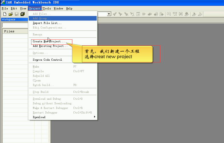 2 在project菜单下新建一个工程
