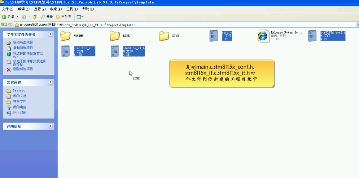 6 选择一个和当前单片机对应的版本,复制如下文件到你新建项目的目录下替换原来的man.c文件。
