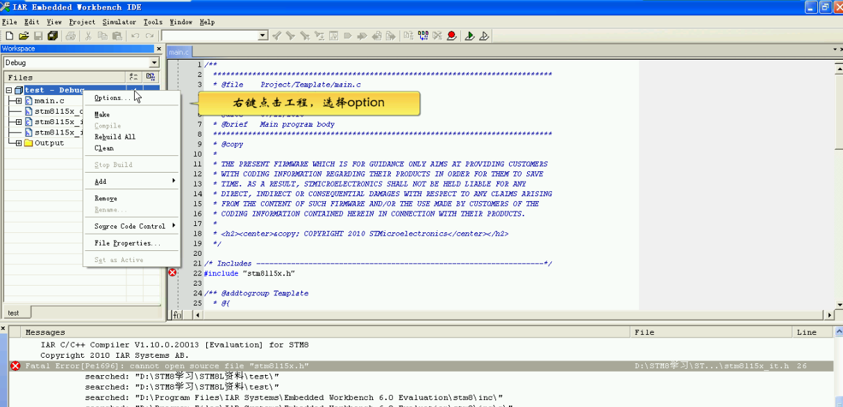 1 安装好IAR For STM8软件。