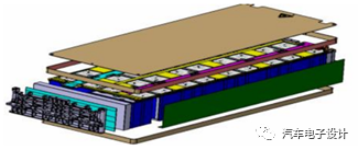 由于对称分成 5 个模组,90 串电芯分成 18 个电芯一个模组,形成在原有电芯尺寸和容量基本不变(电芯化学体系还是有些变化和升级),形成内部如下的设计。
