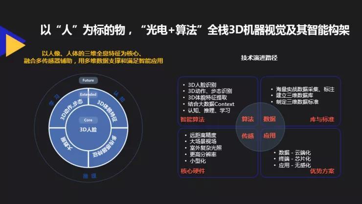 我用“机器视觉”这个词呼应一下前面华为机器视觉总裁段爱国讲的,我们也认为,以后视觉的发展核心不再是给人看,而是给机器看。3D 在这个环节中是非常重要的一个元素。
