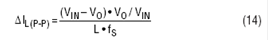 在同步降压转换器中,电感峰峰值纹波电流可计算如下: