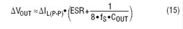 输出电容不仅决定输出电压纹波,而且决定负载瞬态性能。输出电压纹波可以通过公式(15)计算。对于高性能应用,要尽量减少输出纹波电压并优化负载瞬态响应,ESR和总电容都很重要。通常,低ESR钽电容、低ESR聚合物电容和多层陶瓷电容(MLCC)都是不错的选择。