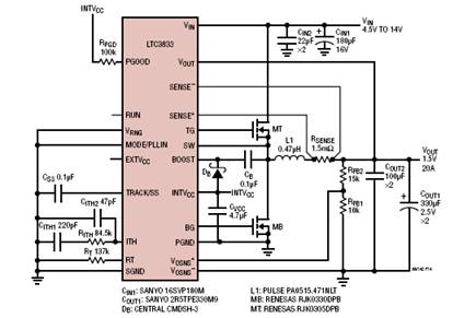 图14.使用LTC3833的快速、控制导通时间电流模式电源