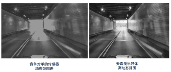 易继辉强调,宽动态范围对于自动驾驶而言至关重要,如果动态范围不到位,呈现出来的图像将会有天壤之别。典型的案例就是隧道宽动态测试,在宽动态不好的情况下,图像隧道外面则一片空白,甚至连隧道墙上的细节都已模糊。人眼可以识别,但机器视觉却无法识别。反之,较高的动态范围则会看清大部分细节。