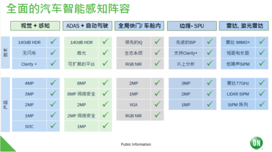 安森美在视觉+感知、ADAS+自动驾驶、全局快门/车舱内、边缘+SPU、雷达/激光雷达等领域,都会提供从低端到高端的多种产品供客户选择。